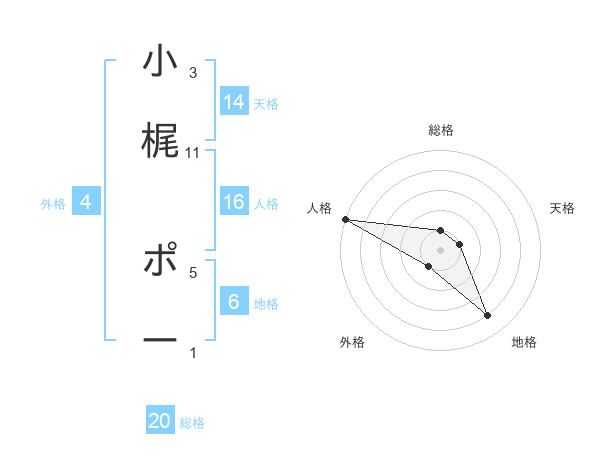 小梶 ポーさんを姓名の画数から五運を鑑定
