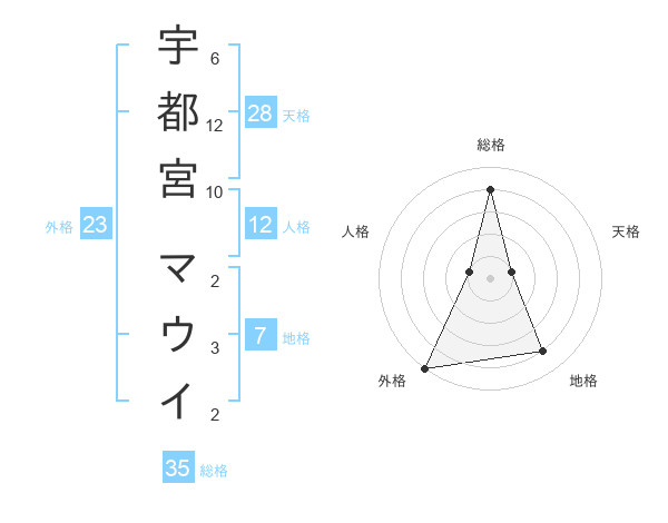 宇都宮 マウイさんを姓名の画数から五運を鑑定