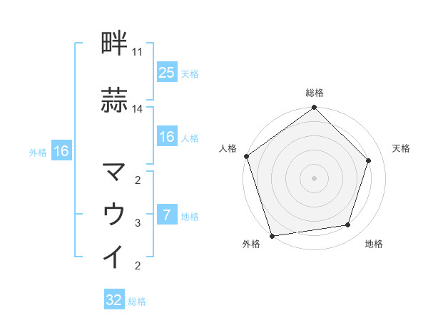 畔蒜 マウイさんの外格は16画の5点!