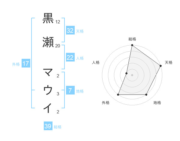 黒瀬 マウイさんの天格は32画の5点!