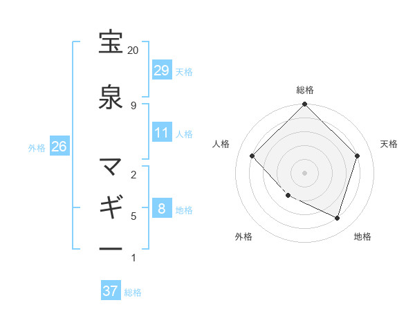 宝泉 マギーさんを姓名の画数から五運を鑑定