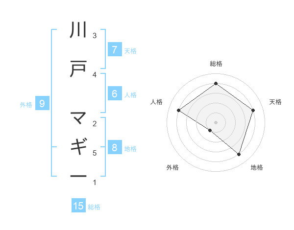 川戸 マギーさんを姓名の画数から五運を鑑定