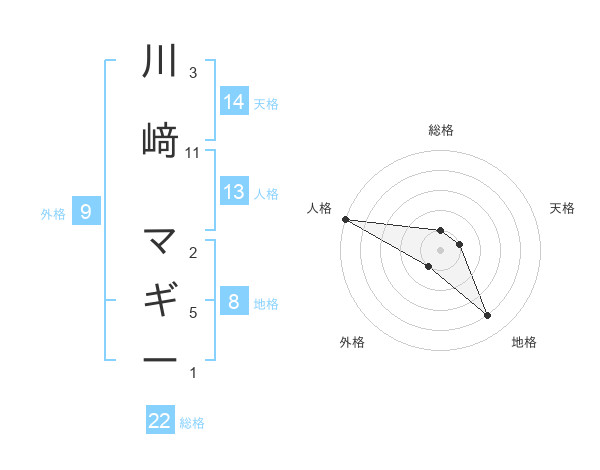 川﨑 マギーさんを姓名の画数から五運を鑑定