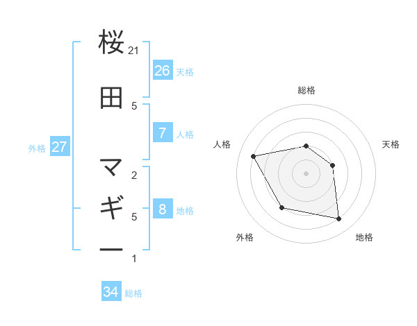 桜田 マギーさんの総格は34画の2点!