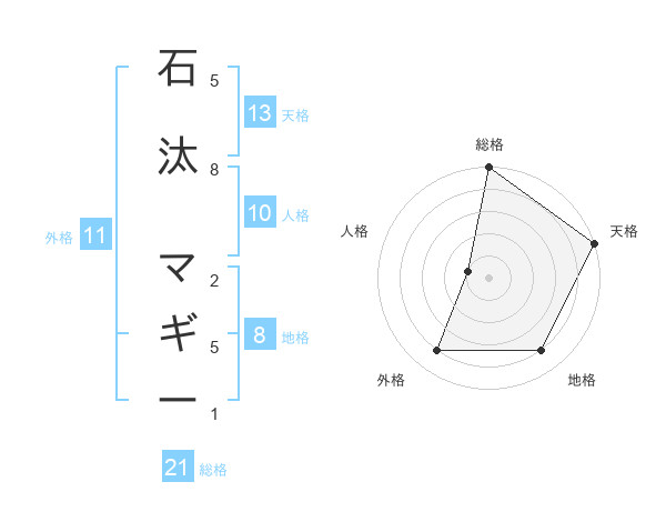 石汰 マギーさんを姓名の画数から五運を鑑定