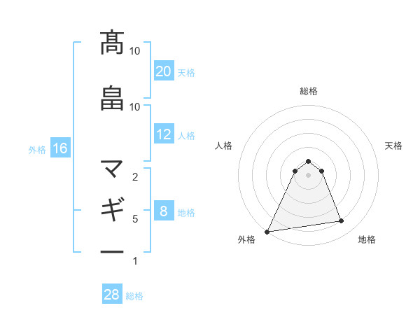 髙畠 マギーさんの総格は28画の1点!