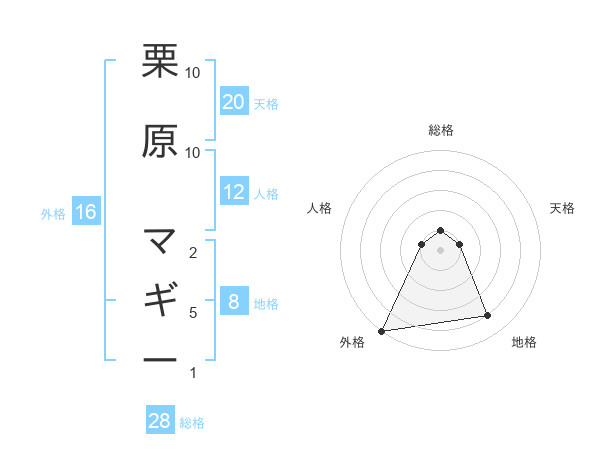 栗原 マギーさんを姓名の画数から五運を鑑定