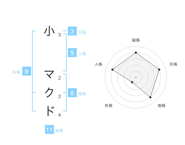 小 マクドさんの総格は11画の4点!