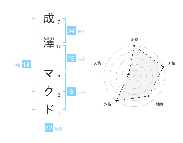 成澤 マクドさんを姓名の画数から五運を鑑定