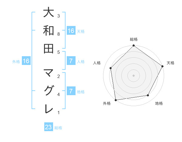 大和田 マグレさんを姓名の画数から五運を鑑定
