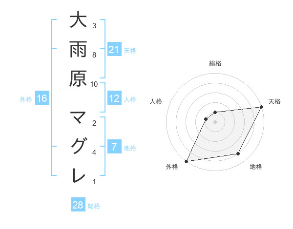 大雨原 マグレさんの天格は21画の5点!