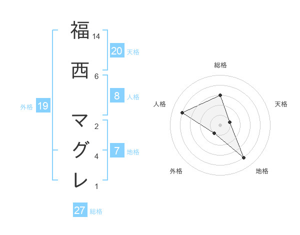 福西 マグレさんの天格は20画の1点!