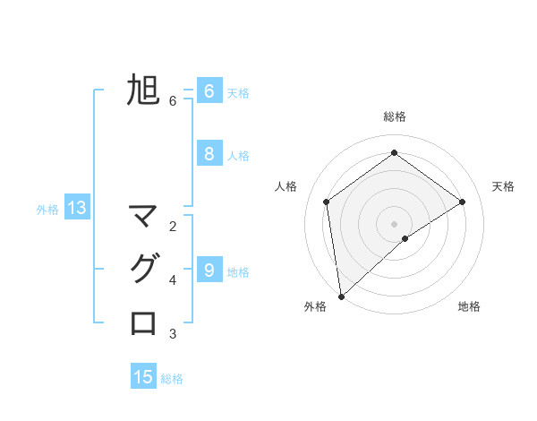 旭 マグロさんの外格は13画の5点!