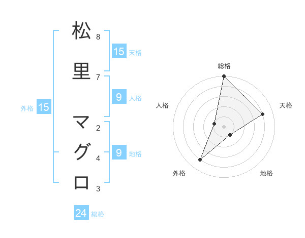松里 マグロさんの天格は15画の4点!