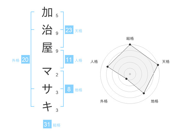 加治屋 マサキさんを姓名の画数から五運を鑑定