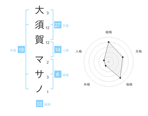 大須賀 マサノさんを姓名の画数から五運を鑑定