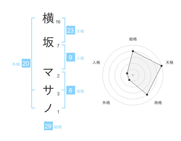 横坂 マサノさんの総格は29画の4点!