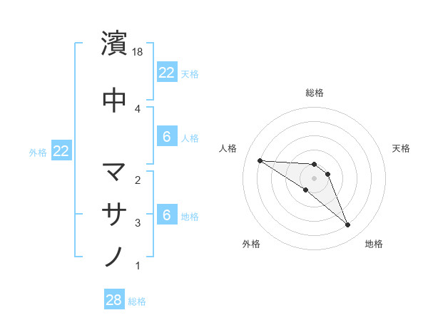濱中 マサノさんの総格は28画の1点