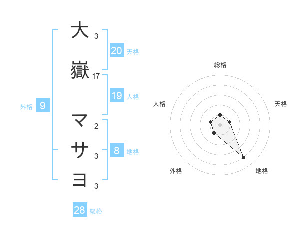 大嶽 マサヨさんを姓名の画数から五運を鑑定