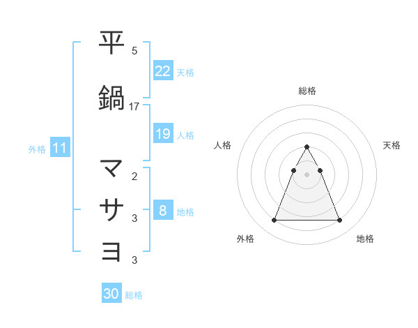 平鍋 マサヨさんを姓名の画数から五運を鑑定
