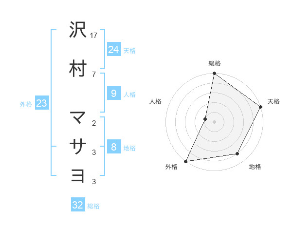沢村 マサヨさんを姓名の画数から五運を鑑定