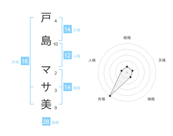 戸島 マサ美さんを姓名の画数から五運を鑑定