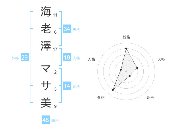 海老澤 マサ美さんを姓名の画数から五運を鑑定