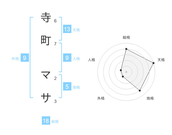 寺町 マサさんの総格は18画の4点!