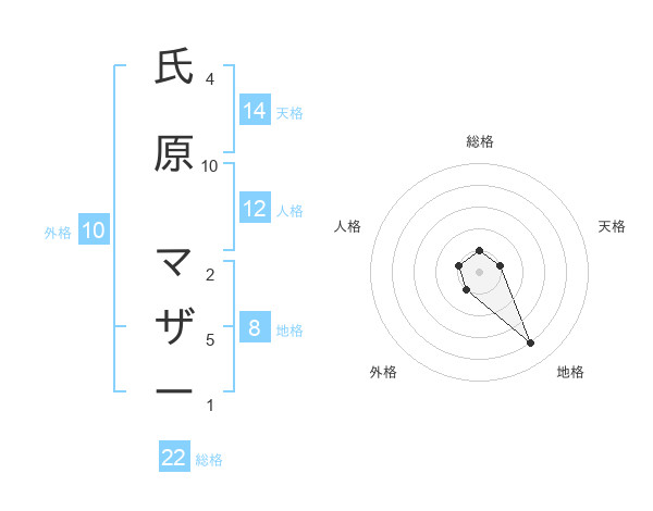 氏原 マザーさんを姓名の画数から五運を鑑定