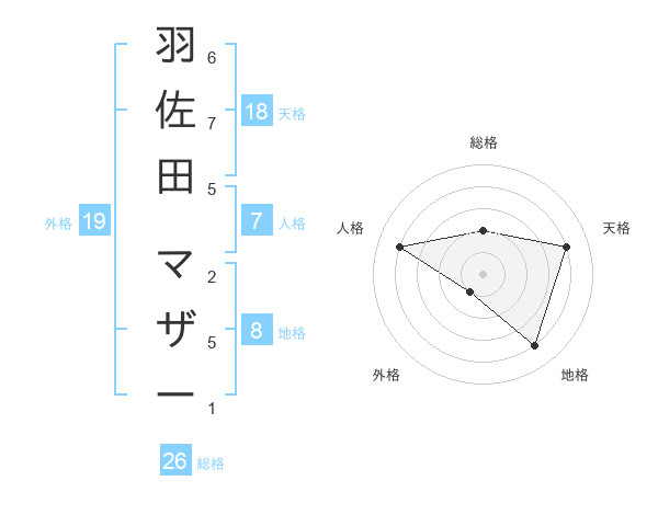 羽佐田 マザーさんの地格は8画の4点!