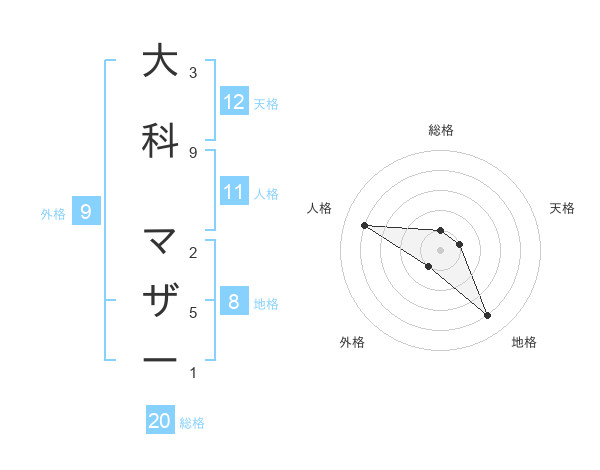 大科 マザーさんの総格は20画の1点!