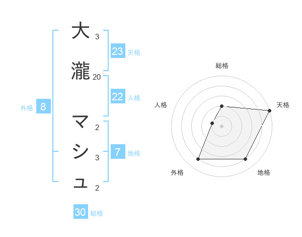 大瀧 マシュさんを姓名の画数から五運を鑑定