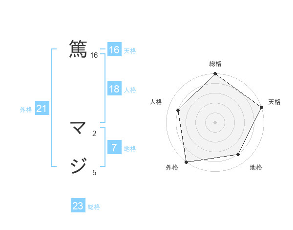 篤 マジさんの外格は21画の5点!