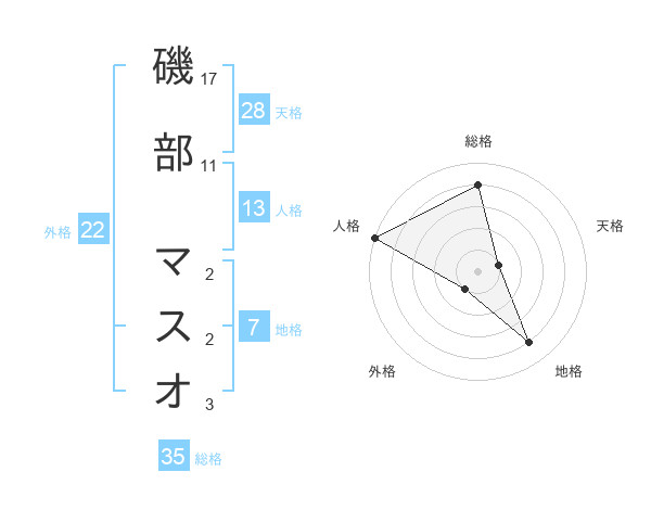 磯部 マスオさんを姓名の画数から五運を鑑定