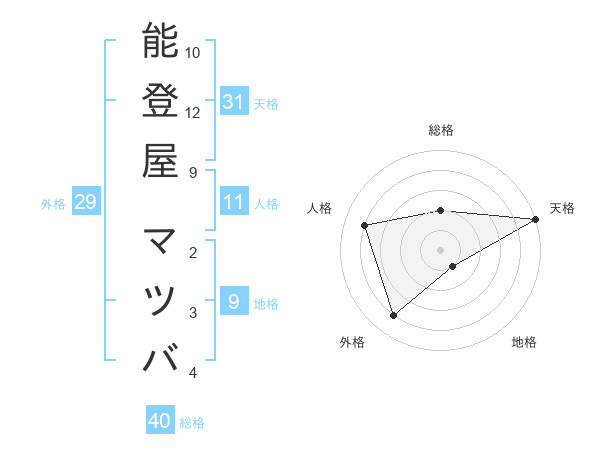 能登屋 マツバさんを姓名の画数から五運を鑑定