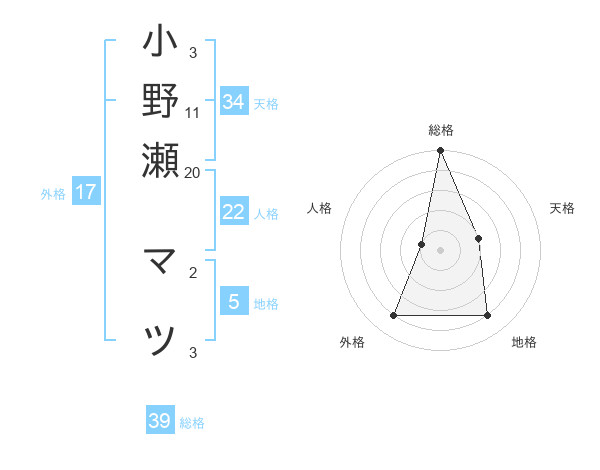 小野瀬 マツさんの総格は39画の5点!