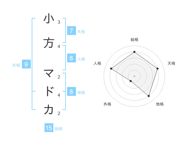 小方 マドカさんの総格は15画の4点!