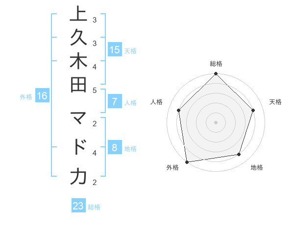 上久木田 マド力さんを姓名の画数から五運を鑑定