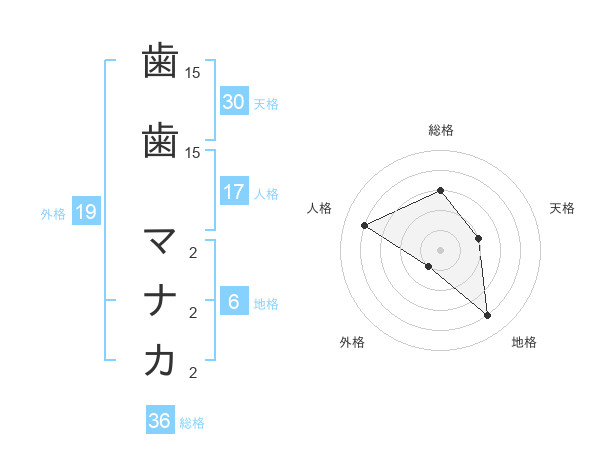 歯歯 マナカさんの天格は30画の2点!