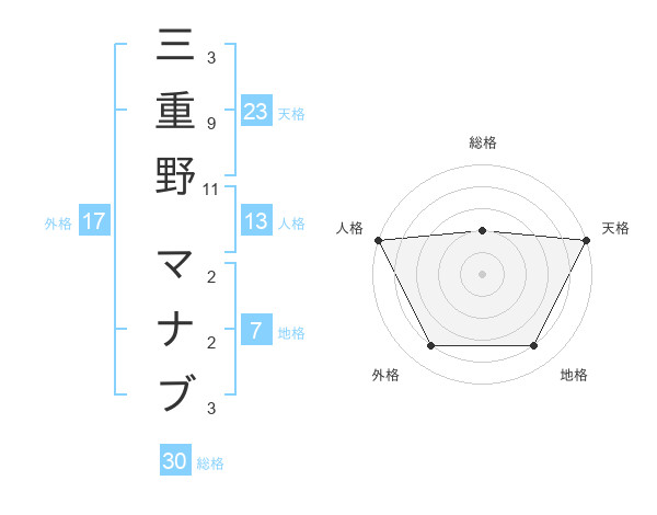 三重野 マナブさんを姓名の画数から五運を鑑定