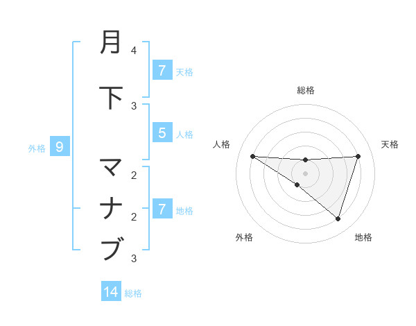 月下 マナブさんの総格は14画の1点!