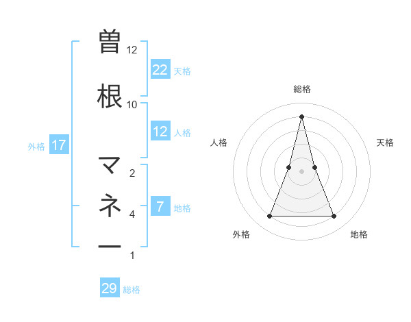 曽根 マネーさんを姓名の画数から五運を鑑定