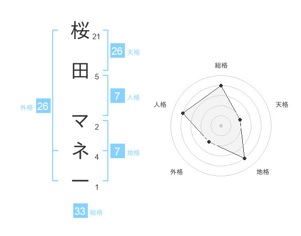桜田 マネーさんを姓名の画数から五運を鑑定