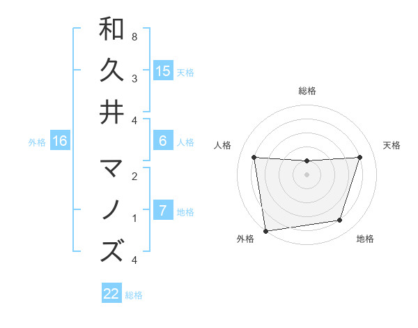和久井 マノズさんの外格は16画の5点!