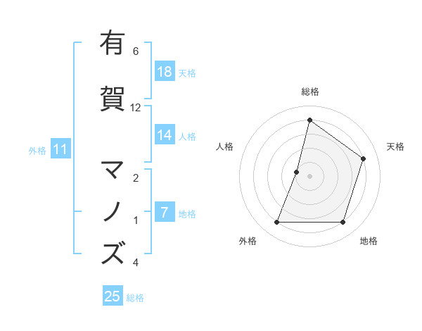 有賀 マノズさんを姓名の画数から五運を鑑定
