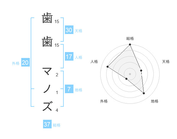 歯歯 マノズさんを姓名の画数から五運を鑑定