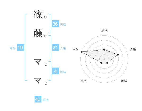 篠藤 ママさんの天格は36画の3点!