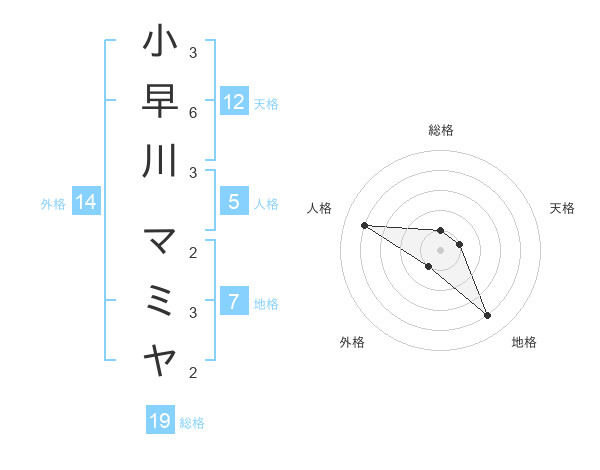 小早川 マミヤさんの総格は19画の1点!