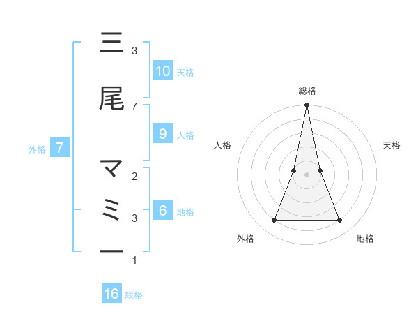 三尾 マミーさんを姓名の画数から五運を鑑定