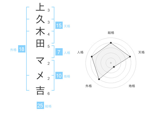 上久木田 マメ吉さんを姓名の画数から五運を鑑定